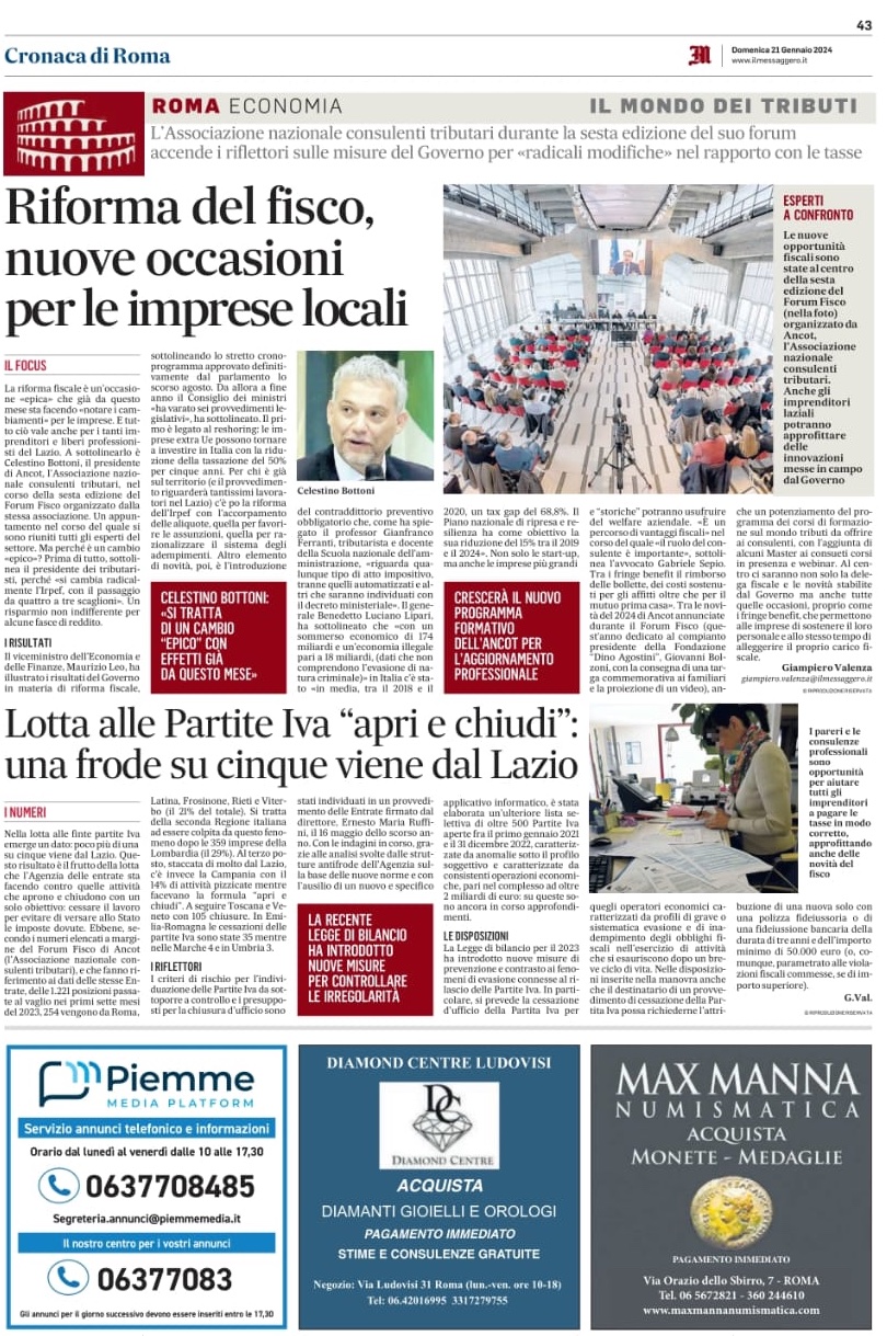 L'Associazione nazionale consulenti tributari durante la sesta edizione del suo forum accende i riflettori sulle misure del Governo per "radicali modifiche" nel rapporto con le tasseRiforma del fisco, nuove occasioni per le imprese locali